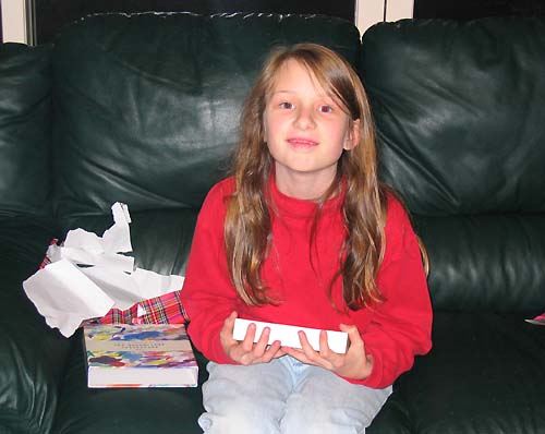 Emma opened her gifts. I don’t even remember now everything she got, but her big gift was a notebook computer, and we also got her some clothes. That evening, we had some premade cheese fondue which Emma loved, and we had gotten her usual request of a cheesecake instead of a birthday cake.