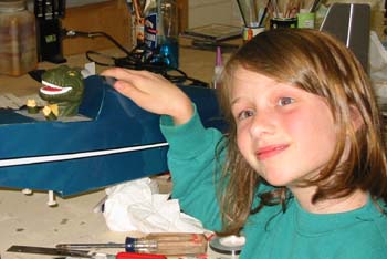 I think this photo was around 2002, when Emma donated a dinosaur puppet for her dad to use in a pilot in one of his planes. It was really cute.